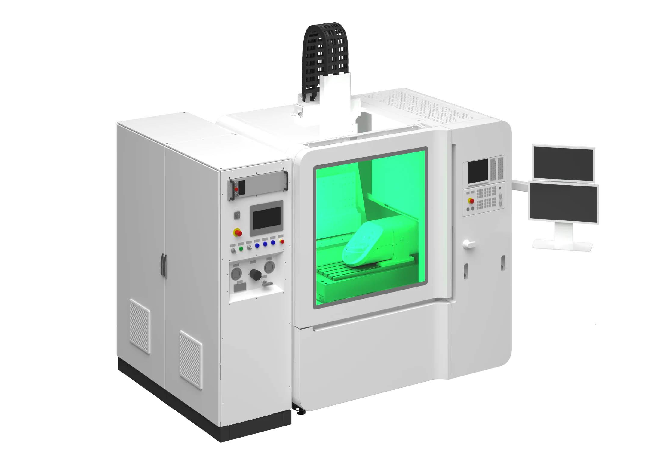 Комплекс гидролазерной резки FL-HYDRO — это 5-осевая система с ЧПУ для точной резки и сверления материалов любой прочности. Подходит для сложных задач в промышленности, легко справляется с материалами разной толщины и формы, а его станина из синтетического Диабаза лучше снижает вибрации, чем чугун и обеспечивает высокую жёсткость при небольших размерах. Спецификация Система перемещения: Габариты рабочей области (В/ø), мм 250х160; Максимальный ход по осям (X,Y,Z), мм 500х350х400; Повторяемость позиционирования Менее 5 мкм; Отклонение от круговой траектории Менее 10 мкм; Точность позиционирования оси А и С ±25''; Максимальная скорость по XY, мм/с 420; Максимальная скорость по Z, мм/с 420; Максимальная скорость оси А, об/мин 200; Максимальная скорость оси C, об/мин 500; Управление ЧПУ HNC 848 По 5 осям. Лазер: QCW Зелёный лазер; Длина волны, нм 1070 (QCW), 532 (Зелёный лазер); Средняя мощность, Вт 450 (QCW), до 30 (Зелёный лазер); Длительность импульсов 10 мкс (QCW), до 100 нс (Зелёный лазер). Система подачи воды: Максимальное давление воды, бар 500; Расход воды, л/ч До 3; Диаметр сопла, мкм 40-100. Габаритные размеры: Габариты станка (ДхШхВ), мм 1855х1250х1950; Габариты шкафа с коммуникациями (ДхШхВ), мм 1600х600х1900; Вес станка, кг 2000; Вес шкафа водоподготовки, кг 500.